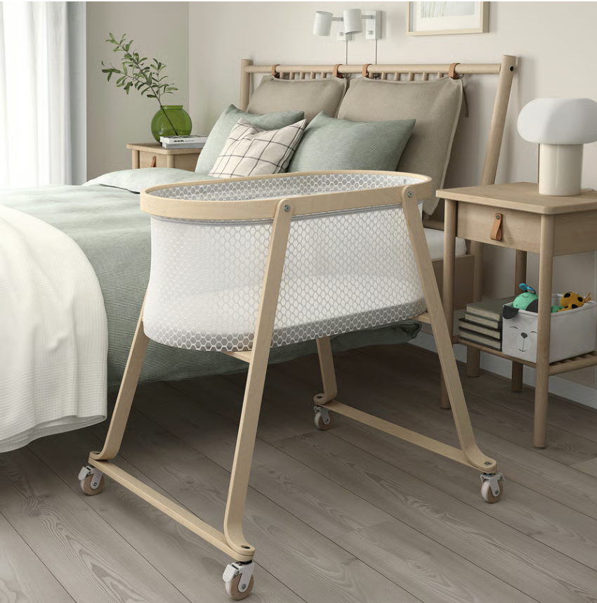 Dale un estilo escandinavo a la habitación de tu bebé con la serie ÄLSKVÄRD. Esta cuna con ruedas, hecha de madera y tela, es fácil de mover y te permite ver y tener siempre cerca a tu bebé.