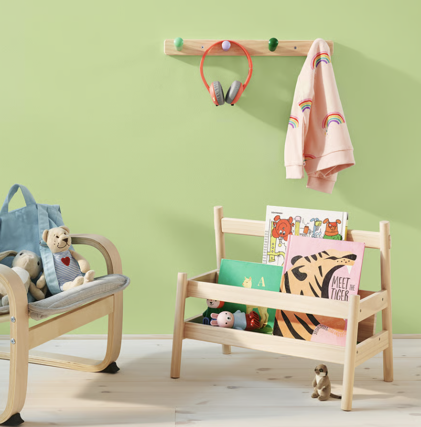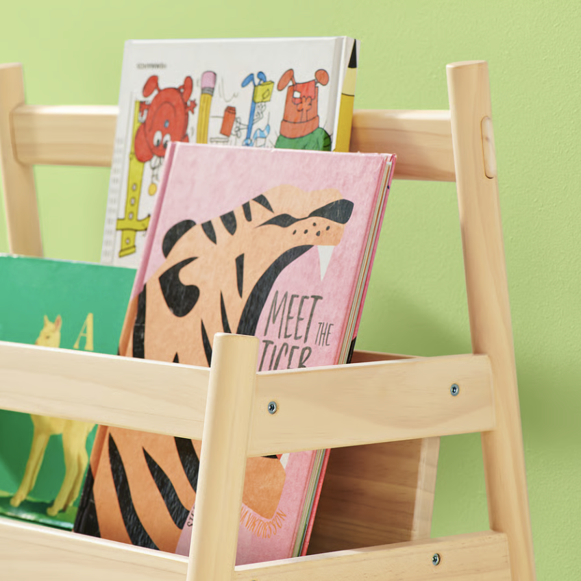 Este mueble bajo pone los libros al alcance de tu hijo. Y como puede ver las portadas, le resulta más fácil elegir. Si aún así no se decide, te lo puedes llevar a la zona de lectura. Tu hijo podrá recoger y ordenar sus libros sin tu ayuda. Como las tapas quedan visibles, tu hijo podrá encontrar fácilmente su libro favorito. Podrás llevártelo cómodamente a tu rincón de lectura preferido.