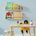 A tu hijo no le costará encontrar su libro favorito, ya que el almacenaje de pared tiene la parte frontal abierta. Si cuelgas el almacenaje de pared a la altura adecuada, tu hijo podrá coger su libro favorito para la hora del cuento. Imagina poder coger tu libro favorito y dejar tu osito de peluche en primera fila para que escuche una maravillosa historia. Con esta práctica solución de almacenaje de pared para niños, esto es posible. Madera maciza.