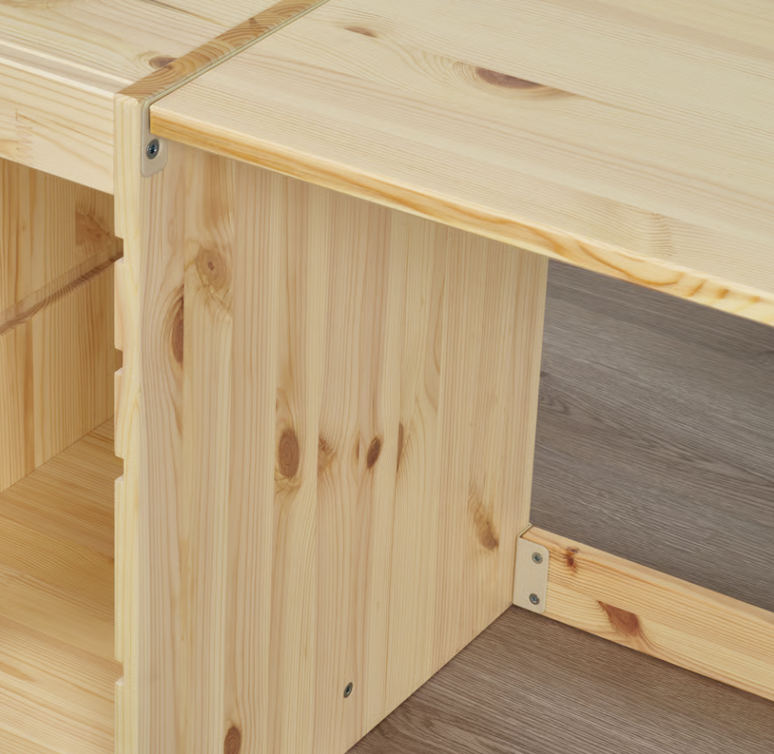 Puedes combinar este tablero en pino macizo con 2 estructuras de pino TROFAST de 32 x 44 x 52 cm para crear un resistente escritorio.
